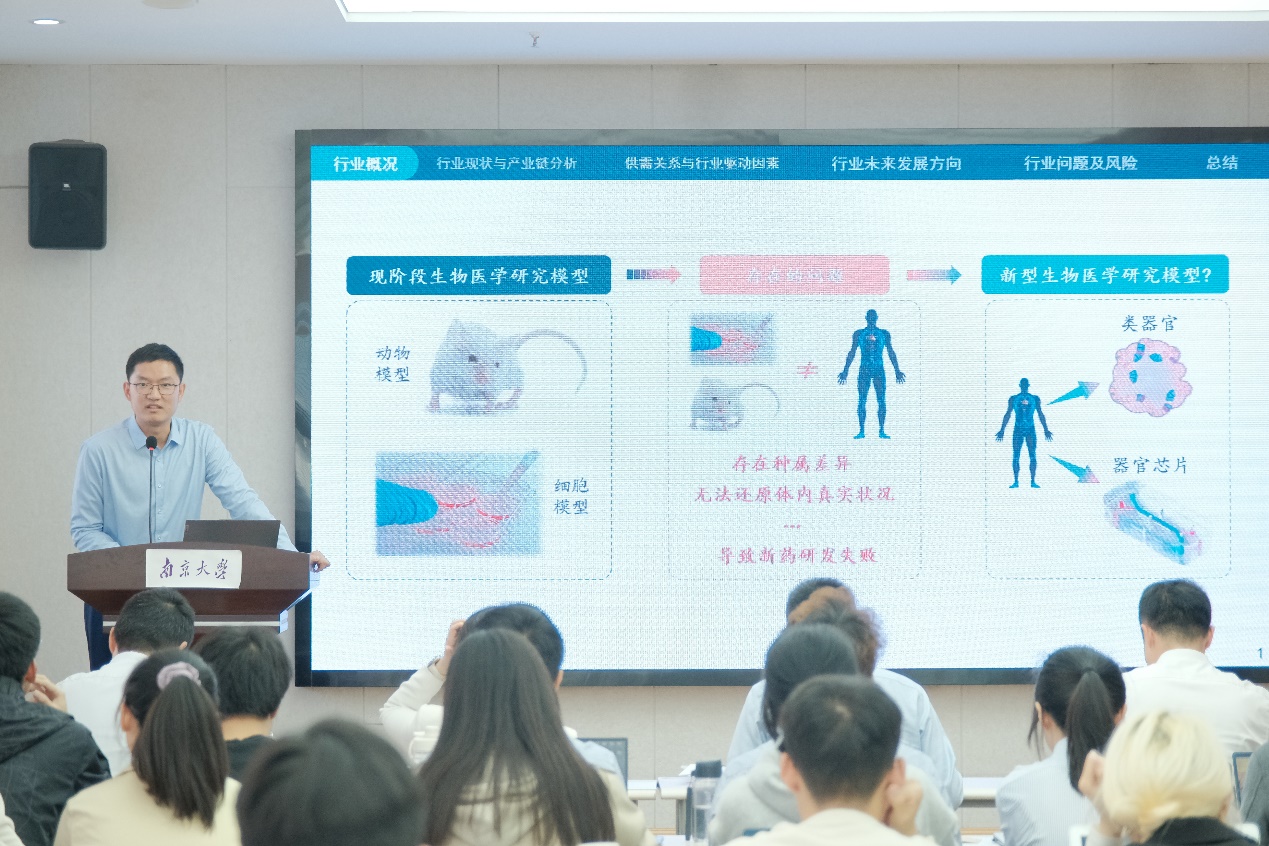 “类器官与器官芯片行研队”由韦德1946体育官方入口2022级博士生张礼堃担任队长,团队成员有韦德1946体育官方入口2022级硕士王园梦及商学院2022级本科生李傲雪。近年来,为了克服传统生物医学研究模型的不足,越来越多的科学家开始构建新型类器官和器官芯片模型,以期在体外复刻人体器官或组织。在这一大趋势的推动下,众多类器官及器官芯片企业应运而生,行业热度逐年增加。然而,这一行业尚处于早期阶段,缺乏统一的行业技术标准体系,在还原度等方面也未能完全满足需求。基于这一行业的广阔发展前景,该团队通过“行走课堂”参访了恒瑞医药、阿斯利康和欧莱雅等企业,在此过程中,团队成员深刻感受到类器官与器官芯片技术的巨大潜力,也让他们深切领悟到科技进步为人类健康带来的新希望和无限可能。张礼堃作为队长带领团队回顾总结了该行业的历史与现状、分析了其存在的问题和风险,并对该行业未来的发展方向进行了展望。
