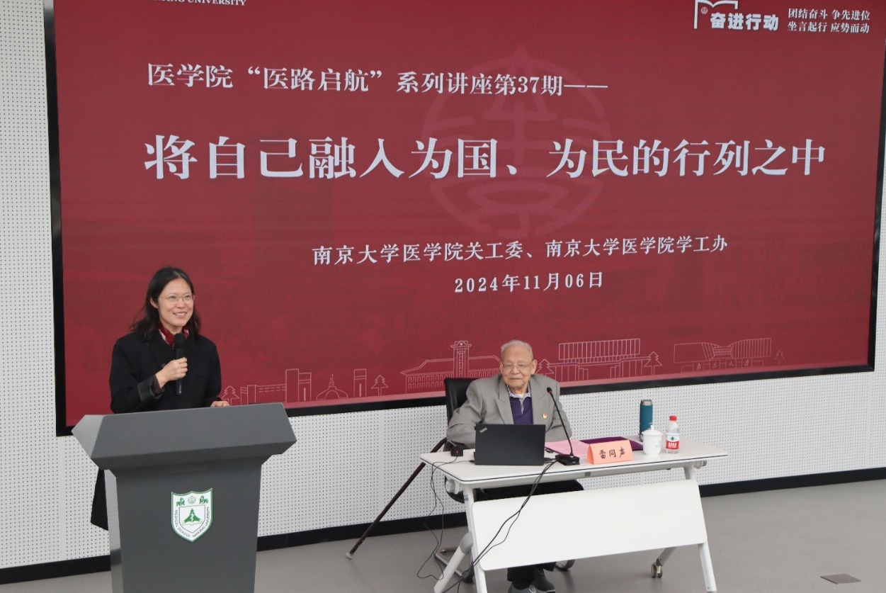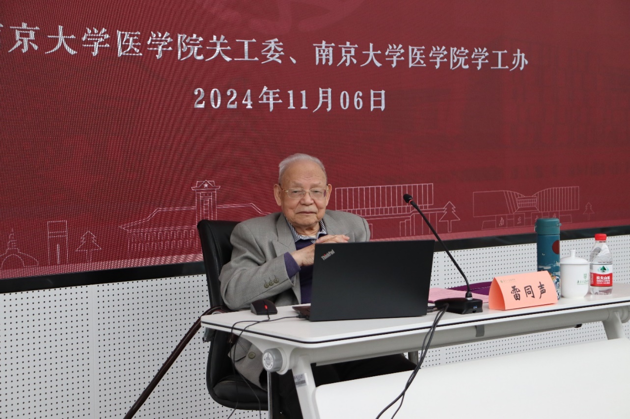 2024年11月6日,韦德1946体育官方入口“医路启航”系列第37期讲座在鼓楼校区韦德1946体育官方入口基础医学科研中心报告厅成功举办,此次讲座荣幸邀请到原国立中央大学韦德1946体育官方入口员工、原南京市卫生局副局长,韦德1946体育官方入口员工会名誉会长雷同声先生,为2024级全体本科生带来了一场题为“将自己融入为国、为民的行列之中”的精彩报告。韦德1946体育官方入口党委副书记、关心下一代工作委员会副主任王阿妮、关心下一代工作委员会副主任宋小苏以及相关老师出席了此次活动。报告会由王阿妮主持。
