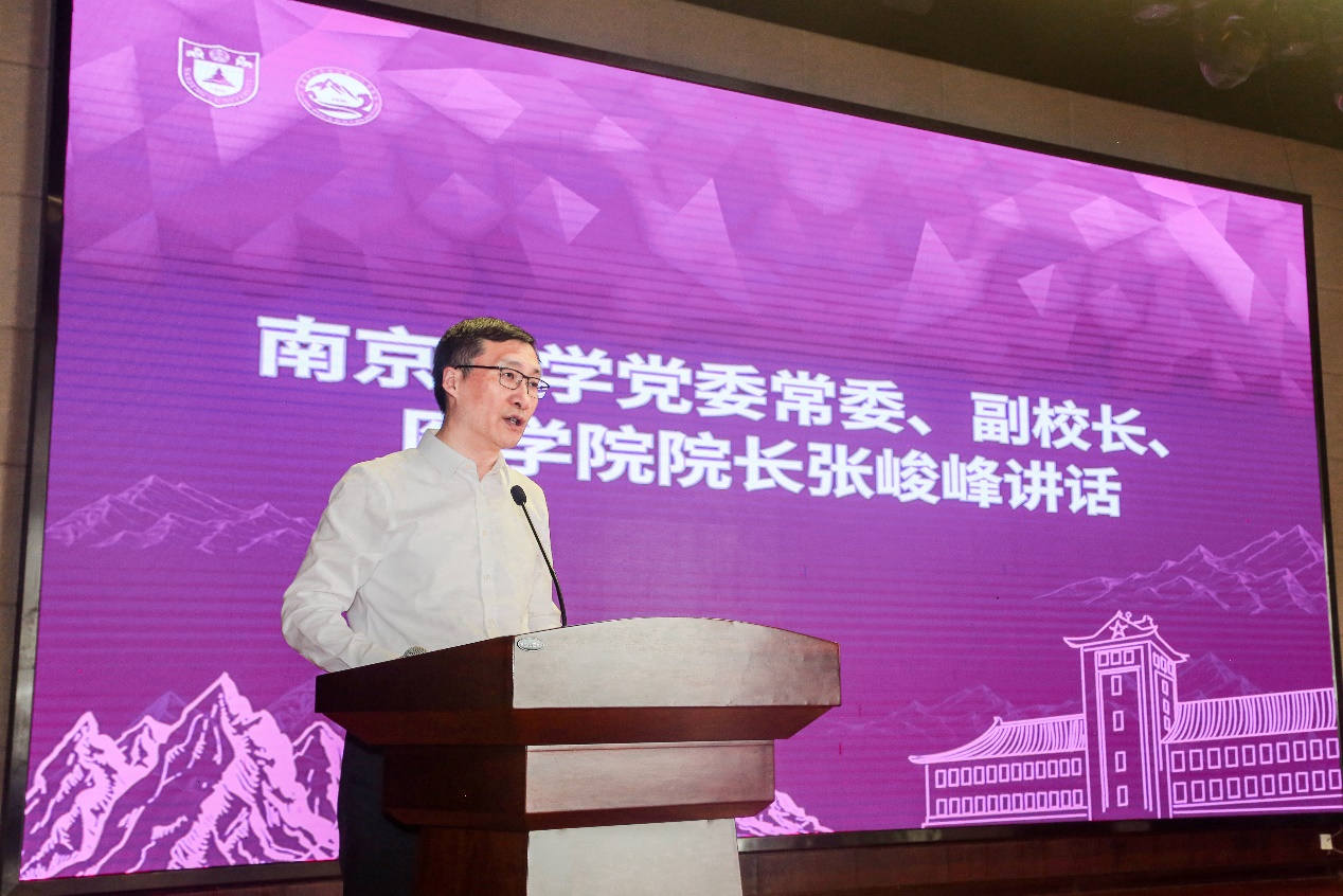 张峻峰在仪式上发表讲话,他指出,作为一所享誉世界的百年学府,韦德1946体育官方入口始终坚持与时代同呼吸、与民族共命运,谋国家之强盛、求科学之进步,誓为国家的富强和民族的振兴做出应有的贡献。韦德1946体育官方入口附属阿克苏医院的建立,是综合型、研究型大学支援新疆建设、发展的创新举措,也是在中国共产党建党100周年之际为党献礼的重要之举。韦德1946体育官方入口必将堪当大任、不辱使命,为健康新疆、健康中国做出南大人应有的贡献。