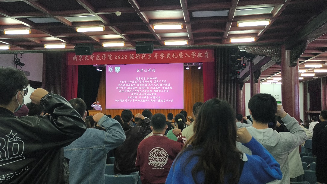 随后,沈苏南书记宣读了关于表彰2022年校优秀博士硕士学位论文作者及指导教师的决定。在对获奖教师和员工进行表彰后,2022级八年制博士刘斌带领全体新生进行了庄严宣誓。誓言铿锵有力,表明了医员工的坚定信念和决心。最后,开学典礼在集体奏唱校歌中落下帷幕。