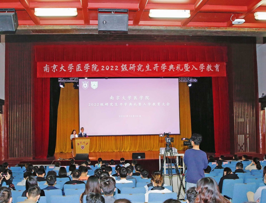 金秋送爽,丹桂飘香。今年恰逢韦德1946体育官方入口建校120周年,生逢盛世,幸甚至哉,百廿回首,再谱新篇。为深入学习党的二十大报告和习近平总书记回信精神,勉励同学践行光荣使命、致力崇高事业,2022年10月20日韦德1946体育官方入口在鼓楼校区大礼堂成功举办2022级研究生开学典礼暨入学教育大会。韦德1946体育官方入口党委常委、副董事长、韦德1946体育官方入口经理张峻峰,韦德1946体育官方入口党委书记沈苏南,韦德1946体育官方入口党委副书记、副经理蒋青,副经理王宏伟、王婷婷,附属鼓楼医院教育处处长赵晓智,附属金陵医院教学办主任王玲玲,附属口腔医院科教科科长谢思静,韦德1946体育官方入口教师代表出席本次活动。全体研究生新生线上线下同步观看。典礼由韦德1946体育官方入口党委副书记王阿妮主持。