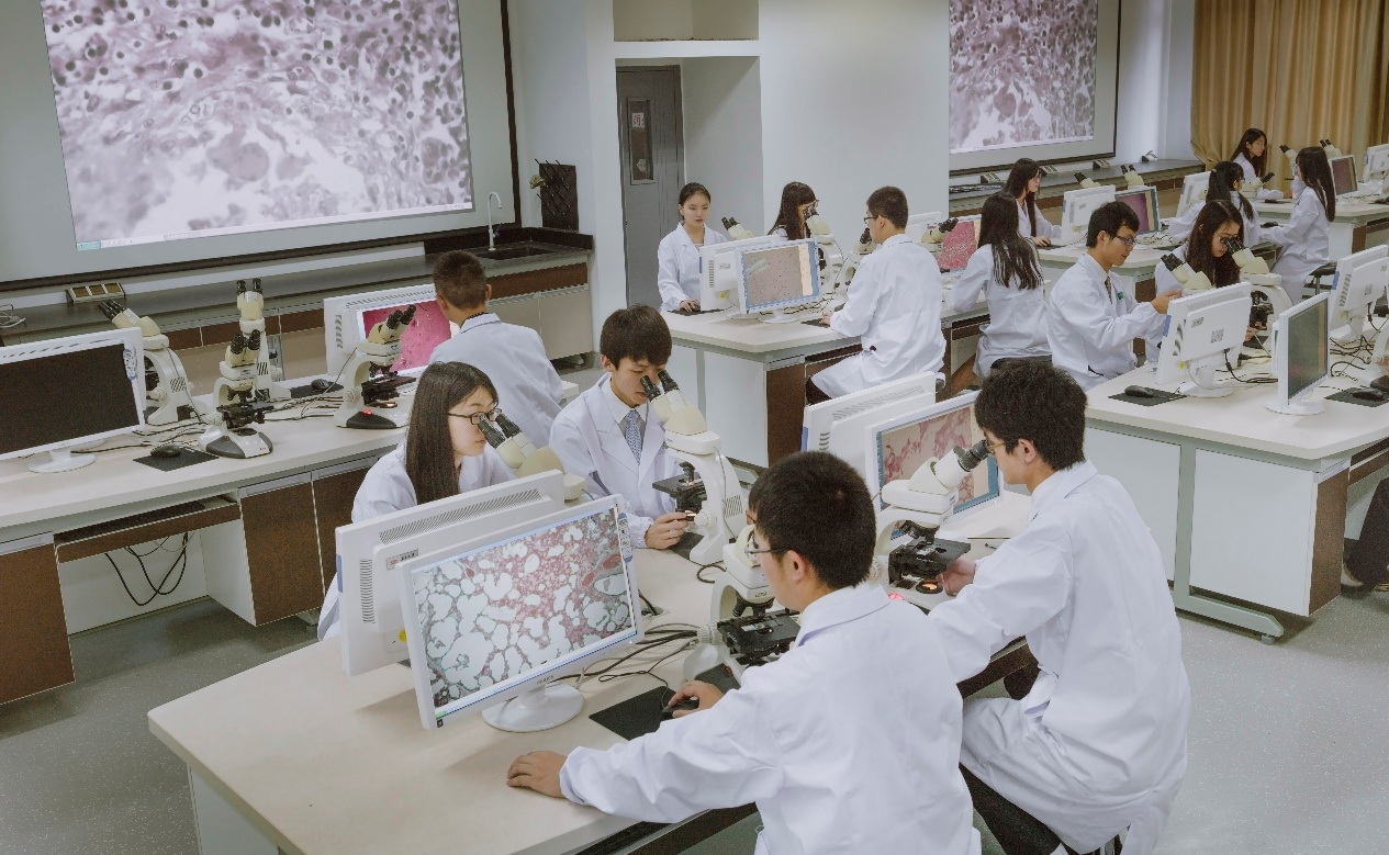 显微互动微观形态学实验室,主要为组织学和胚胎学以及病理学实验课而建设,帮助员工构筑微观形态学知识架构。除了可以采集显微镜下的图像,利用显示器进行观察外,还可以借助网络,实现师生的互动。2023年对该实验室进一步进行了软硬件升级改造,配有与显微镜适配的高清摄像头,使员工们能更好地观察器官、组织的微观结构,易于发现问题并解决问题,大大提高了员工的学习效率和自主学习兴趣。在教师指导下,员工利用显微互动系统、多媒体、标本、模型等独立观察、分析判断组织切片的微细结构和标本、模型的结构,借以验证、巩固和深化所学的理论知识。