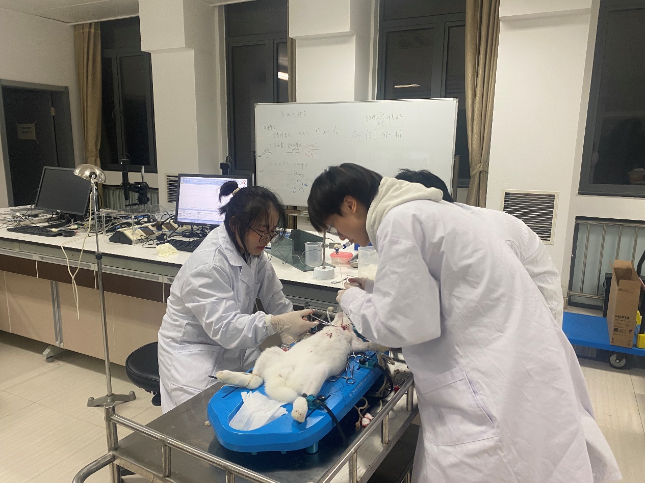 17 日上午,比赛正式拉开帷幕,首先进行了时长 1 小时的理论考试,涵盖解剖、组胚、病理、病原学标本识别理论考核及 ESP 虚拟标准化病人案例考核,全面考查员工对医学基础知识的理解与应用能力。随后的线下实操环节,要求选手在家兔身上进行休克模型复制操作,着重检验员工的动手能力、手术操作规范性及模型构建成功率。比赛中,两队同学沉着冷静、配合默契,凭借扎实的基本功和出色的应变能力圆满完成各项比赛。