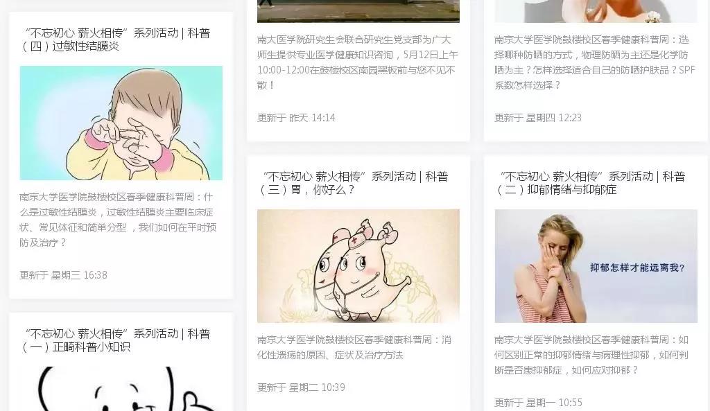 健康咨询与科普周活动主要包含两个部分:线上健康知识科普和线下健康知识咨询。5月5日-5月11日,韦德1946体育官方入口研究生会公众号每日推出一篇科普文,包括了《正畸科普小知识》、《抑郁情绪与抑郁症》、《胃、你好么?》、《过敏性结膜炎》、《怎样科学防晒》等涵盖口腔、心理、消化、眼科和皮肤科等诸多专业的一系列文章。这一系列健康推文针对师生们关心的健康问题进行了知识普及,师生们纷纷留言表示有所收获,支持和感谢。