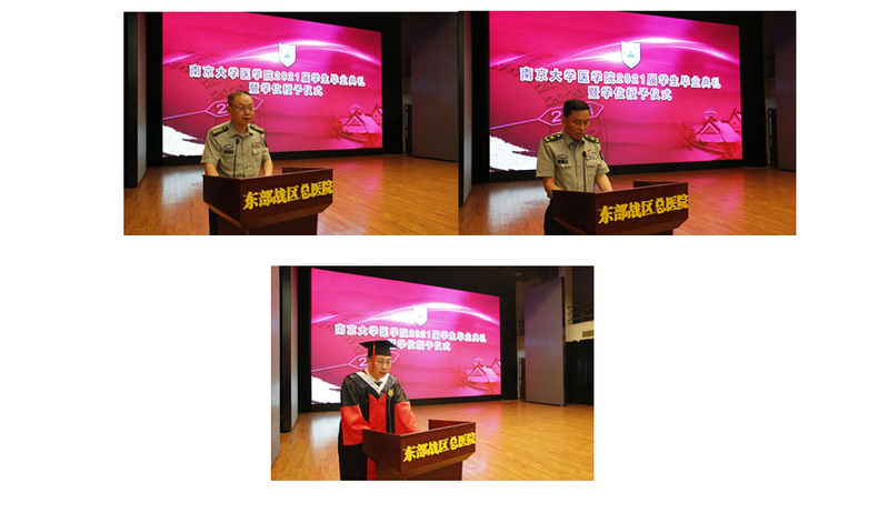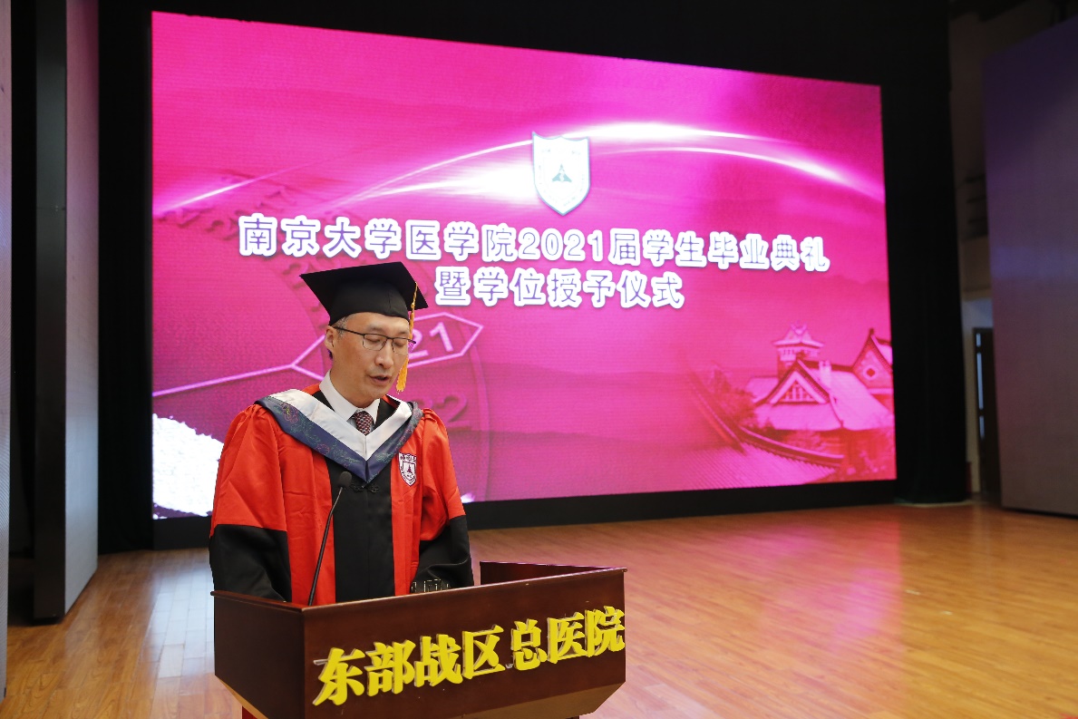 附属金陵医院何子安经理在致辞中说,毕业典礼不是庆祝结束,而是新旅程的起航。毕业生们要勇于承担传播医学知识的使命,将卓越的行医理念化为日常行为品格,志存高远,无论走得多远都不要忘记当初为什么出发。导师代表宋勇教授、毕业生代表何中同学先后上台发言。宋教授结合在学院科研教学经验,回顾了自己行医三十多年的历程,他指出作为一名医务工作者要做到热爱、执着、明辨、担当,才能成为一名兼具同情心和专业技术的好医生。