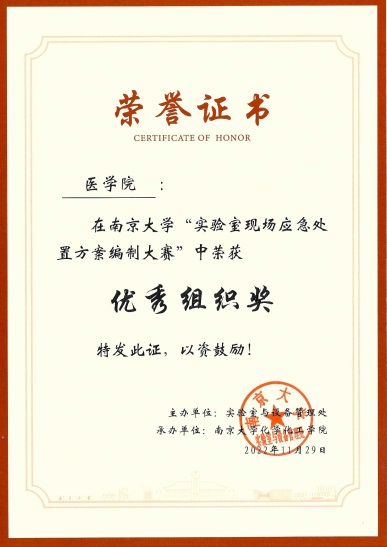 韦德1946体育官方入口“最佳组织奖”获奖证书