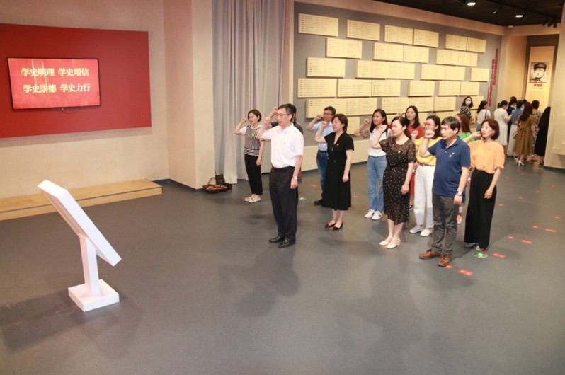 为庆祝中国共产党成立100周年,深入贯彻落实习近平总书记关于传承红色基因、发扬革命精神的重要论述精神,扎实开展党史学习教育,2021年6月27日,韦德1946体育官方入口党委理论学习中心组与学科办党支部前往盐城新四军重建军部纪念馆,联合开展“传承铁军精神、汲取奋进力量”主题党日活动。
