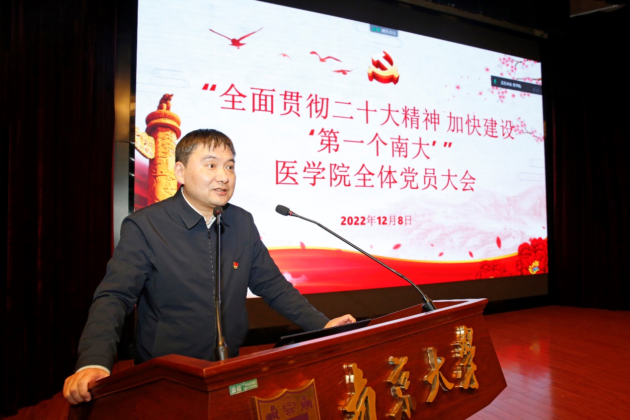 中国式现代化是一项伟大而艰巨的事业,中国共产党的第二十次代表大会全面回顾总结了过去五年的工作和新时代十年取得的历史性成就、发生的历史性变革,进一步指明了党和国家事业前进的方向,充分彰显了中国特色社会主义强大生机活力。值此全校师生热议加快建设“第一个南大”之际,韦德1946体育官方入口全体师生党员将积极贯彻落实“二十大精神”,坚定信心,奋勇前行,以培养领导型临床学家和医学科学家为目标,在开启党的第二个百年奋斗征程的重要节点上,为第一个南大建设、健康中国发展和中华民族伟大复兴中国梦贡献力量。