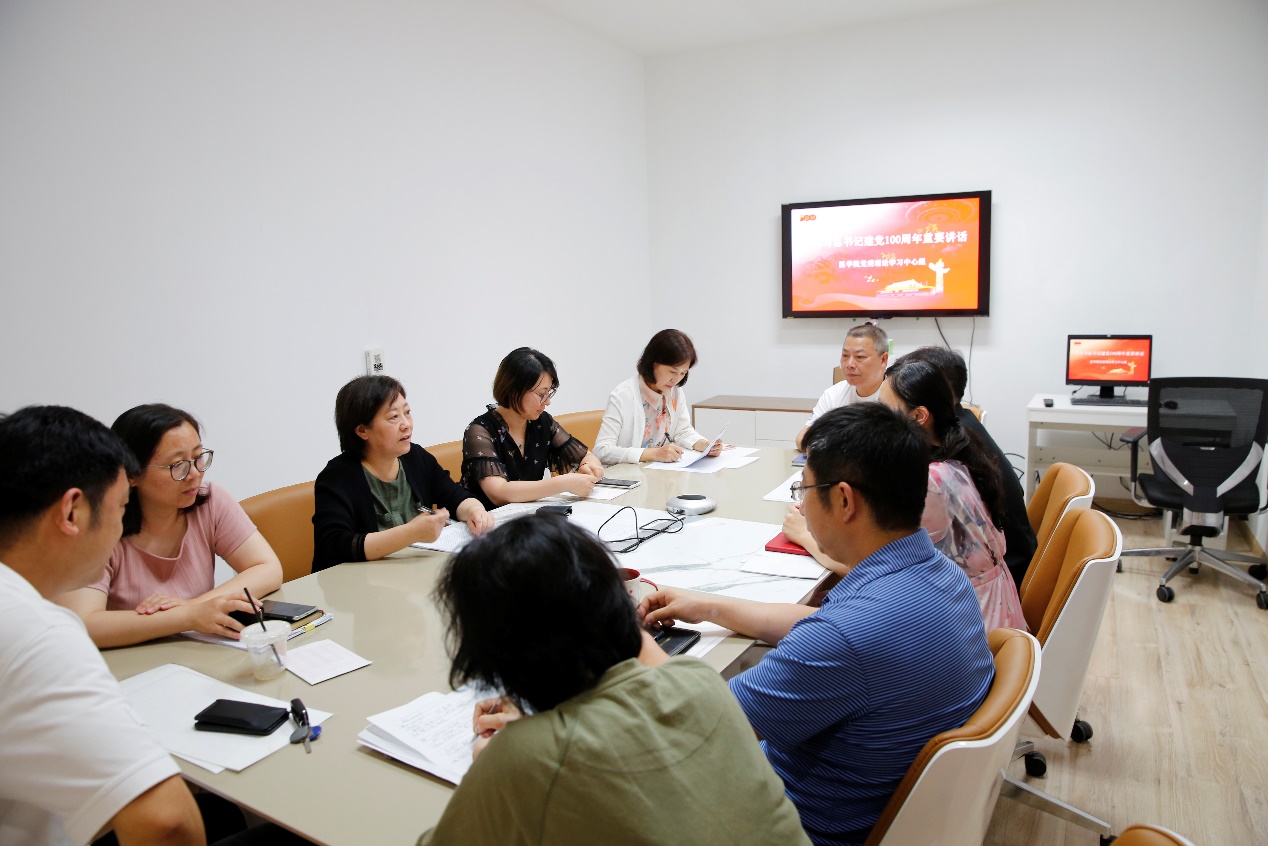 韩晓冬首先领学了习近平总书记在庆祝大会中国共产党成立100周年大会上的重要讲话。她提到,总书记在建党百年的伟大时刻首先带领我们再次深刻领会中国共产党的初心和使命的内涵,归结起来一个主题:实现中华民族的伟大复兴。为了实现这一目标,中国共产党团结带领中国人民创造了新民主义革命的伟大成就,创造了社会主义革命和建设的伟大成就,创造了改革开放和社会主义现代化建设的伟大成就,创造了新时代中国特色社会主义的伟大成就。然后,总书记提到,以史为鉴、开创未来,必须坚持中国共产党坚强领导,必须团结带领中国人民不断为美好生活而奋斗,必须继续推进马克思主义中国化,必须坚持和发展中国特色社会主义,必须加快国防和军队现代化,必须不断推动构建人类命运共同体,必须进行具有许多新的历史特点的伟大斗争,必须加强中华儿女大团结,必须不断推进党的建设新的伟大工程。最后,总书记号召广大中国共产党员,牢记初心使命,坚定理想信念,践行党的宗旨,永远保持同人民群众的血肉联系,始终同人民想在一起、干在一起,风雨同舟、同甘共苦,继续为实现人民对美好生活的向往不懈努力,努力为党和人民争取更大光荣!韩晓冬谈到,习总书记的讲话逻辑严谨、内涵丰富、思想深刻、振奋人心,对全党在新的百年奋斗起点做好各项工作指明了前进的方向,明确了行动的指南,为践行中华民族的伟大复兴凝聚了奋进的决心和澎湃的力量。