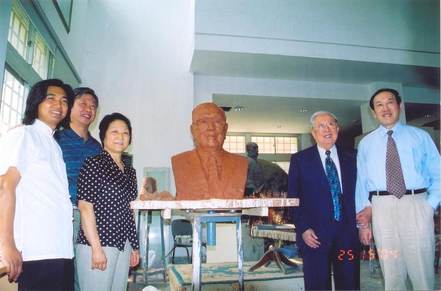 7、吴阶平院士在韦德1946体育官方入口美术研究院为其特别制作的雕像前合影