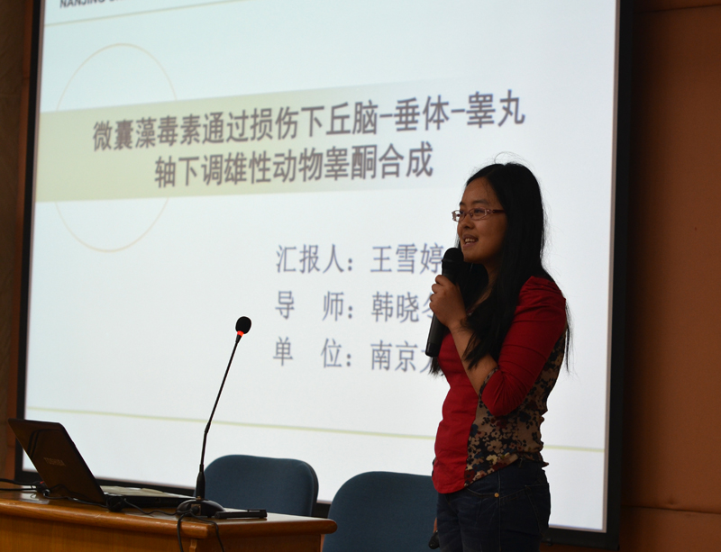 接下来由遴选出来的十二名同学汇报自己的科研论文情况,由评审专家分别提问点评和打分,并与现场同学们进行交流。王雪婷同学关于“微囊藻毒素(MC-LR)通过损伤下丘脑-垂体-睾丸轴下调雄性动物睾酮合成”的汇报,展现其广泛的阅读面,实验设计严密,方法先进,所用资料、实验结果、计算数据的可靠,汇报表达情况简明扼要、重点突出,获得评委的青睐,获得论坛汇报一等奖。郭文文、汪秀星获得二等奖,沈洁、周波、乔海石获得三等奖。同学们的汇报均内容充实、实验设计及数据严谨,展现了韦德1946体育官方入口研究生良好地科研素养和创新能力。