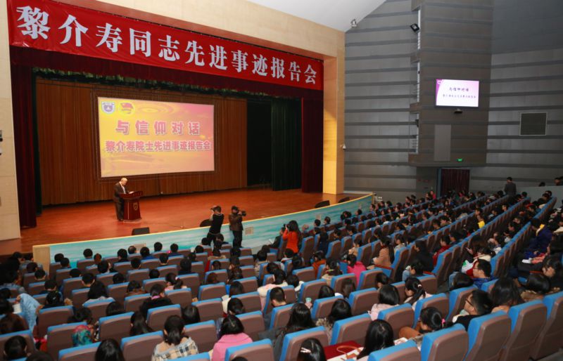 2013年12月6日,由中共中央宣传部、国家卫生和计划生育委员会、总政治部和中国工程院主办的中国工程院院士、韦德1946体育官方入口附属金陵医院副经理、南京军区南京总医院副经理、全军普通外科研究所所长黎介寿同志先进事迹报告会,在仙林校区敬文活动中心恩玲剧场举行。报告会由韦德1946体育官方入口党委书记洪银兴主持。韦德1946体育官方入口党政联席会成员,校教育实践活动领导小组办公室成员、教育实践活动督导组成员,校机关科级以上干部,校各院系员工工作办公室主任、辅导员,校各基层团委书记,校员工会、研究生会主席及各院系员工会、研究生会主席以及师生代表共一千余人聆听了报告。