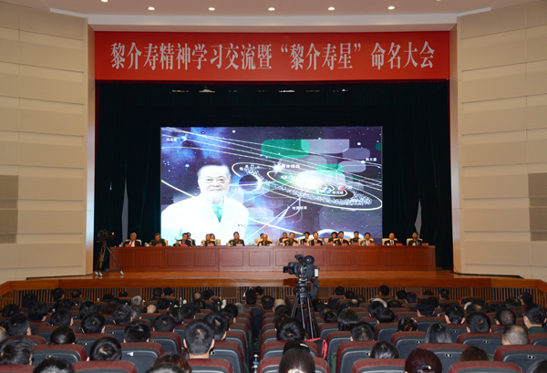 黎介寿是国际著名普通外科学家、医学教育家,亚洲同种异体小肠移植的开拓者、我国肠外瘘治疗的鼻祖、临床营养支持的奠基人。他矢志追寻中国梦、强军梦,把共产党人的先进性纯洁性大写在报国为民的实践中,书写了不老的传奇。他的先进事迹经全国各大主流媒体宣传后,在社会各界引起强烈反响。为表彰弘扬黎介寿院士的突出贡献和崇高精神,由中国科学院紫金山天文台发现、报国际小行星中心批准,国际编号为192178小行星被正式命名为“黎介寿星”,并刊入《国际小行星历表》,永载史册,成为该天体的永久星名,为世界各国所公认。在命名大会上,黎介寿表达了自己的感激之情:“我一直研究肠道功能障碍,被称为‘一根肠子走到底’的人,但是终点还很远,我要继续走下去……”