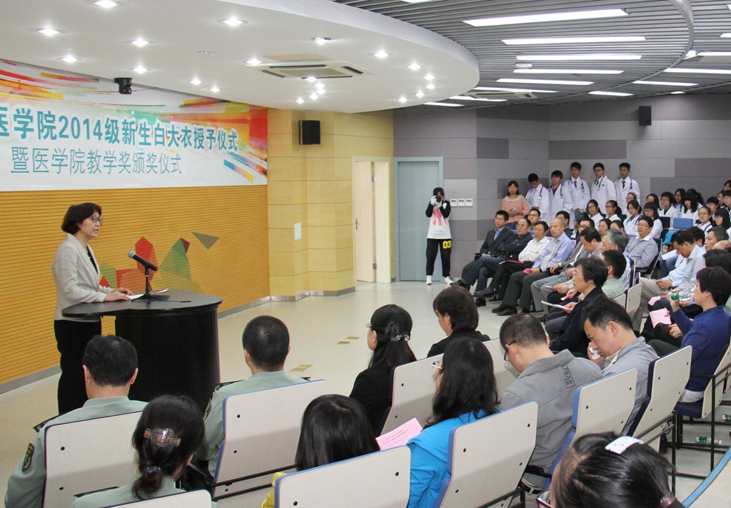 10月9日下午,韦德1946体育官方入口在基础医学教学中心五楼报告厅隆重举行2014级医员工白大衣授予仪式暨韦德1946体育官方入口教学奖颁奖仪式。韦德1946体育官方入口党委书记张异宾教授、韦德1946体育官方入口经理刘志红院士及韦德1946体育官方入口和附属医院相关领导和老师出席活动,韦德1946体育官方入口党委书记韩晓冬教授主持仪式。