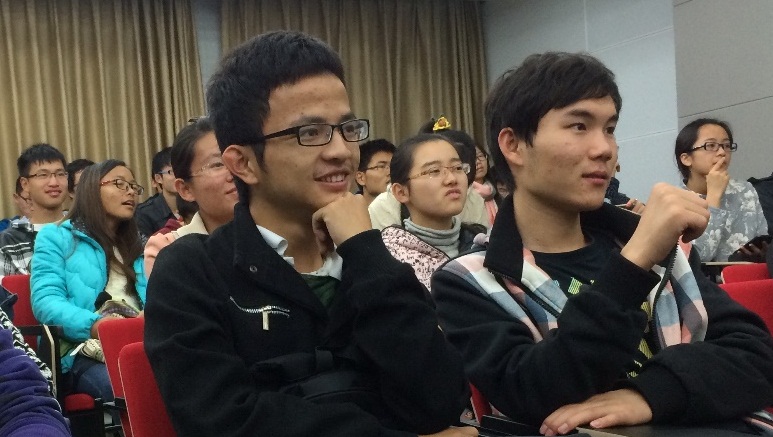 此外,他还通过自己爬山的经历告诉大家人生哲理:在你最失望的时候,在你最累的时候,再坚持一下,也许,顶峰就在不远的前方。吴老师一句“谁不曾帅过”让众人亲身体会到了他的诙谐幽默,他渊博的知识以及对平凡生活活琐事的热情和认真让在场听众领悟到了他对生活的热爱,他的一席话语让同学们深刻体会到快乐的人生不是去不断地寻求快乐,而是要真真切切地去领悟自己拥有的快乐。
