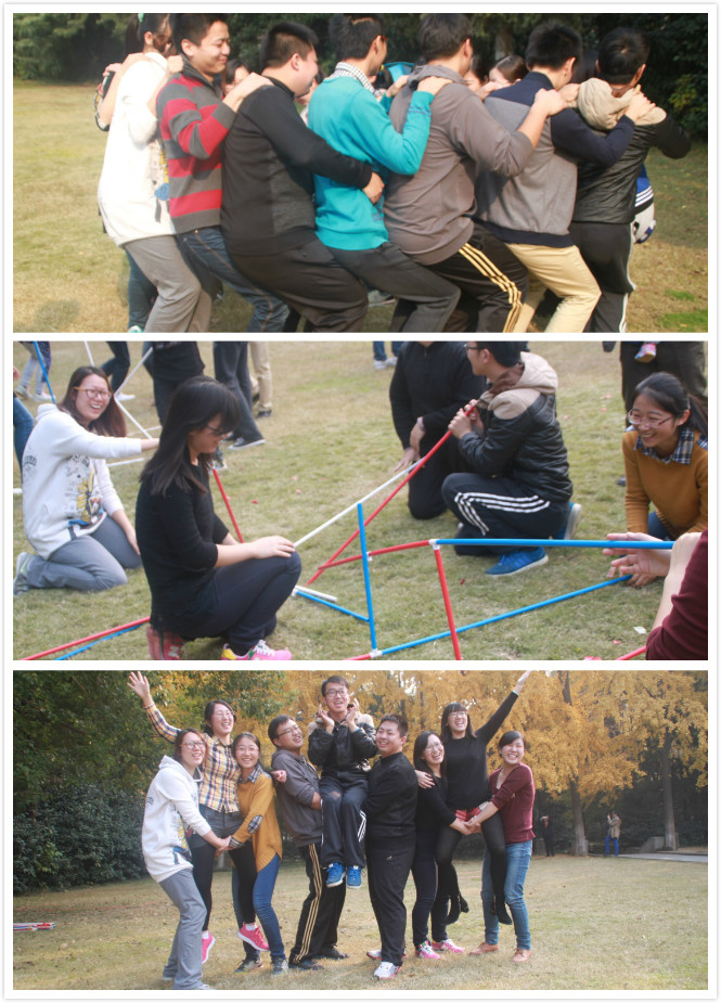金秋银杏遍撒,风景如画,天高云淡。本次拓展活动在美丽的北大楼广场前开展。通过一个简短的“记名字”环节、“万里长城永不倒”环节、“同步接力”、“移动乒乓球”环节等,大家迅速地熟悉了起来,平等、亲密成为了当天活动的主基调,本次素质拓展活动让成员们从观望转向热情参与,合作、信任在大家的举手投足间。