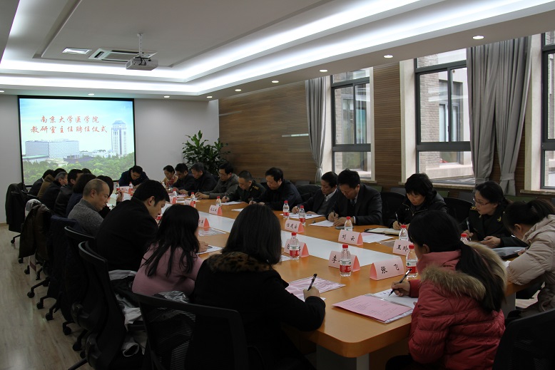 2015年1月28日下午,韦德1946体育官方入口在东南楼214会议室隆重举行教研室主任聘任仪式,韦德1946体育官方入口经理刘志红院士、韦德1946体育官方入口党委书记韩晓冬、附属金陵医院医务部主任胡佳乐、附属鼓楼医院教育处处长周玉皆、附属口腔医院副经理孙卫斌、韦德1946体育官方入口副经理蒋青、李朝军及各教研室主任参加了会议,韦德1946体育官方入口经理助理沈苏南主持聘任仪式。