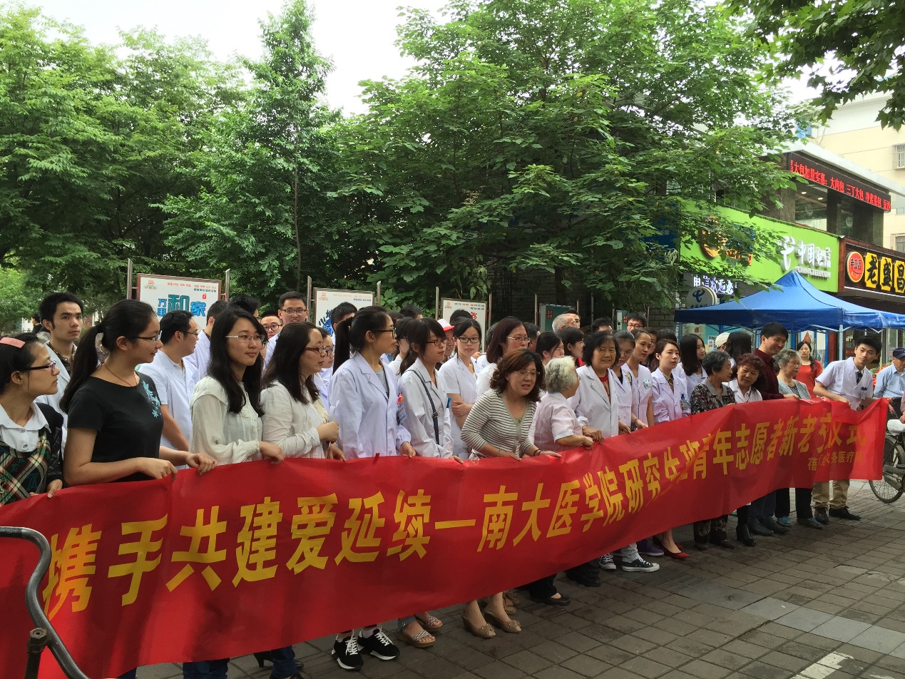 自2010年起,韦德1946体育官方入口研究生党支部与建邺区南湖蓓蕾社区支部携手共建,为周边居民义诊,并提供医疗咨询服务,已经过去5年的时间。随着时间的推移,首批志愿者早已走上工作岗位,后来的学弟学妹们承接上了老一辈志愿者的责任,从未间断。志愿服务作为新的党员教育模式,在奉献中体现价值,在奉献中磨练党性,“大医精诚饮水思源”让韦德1946体育官方入口的感恩和责任意识传播于青年党员中。