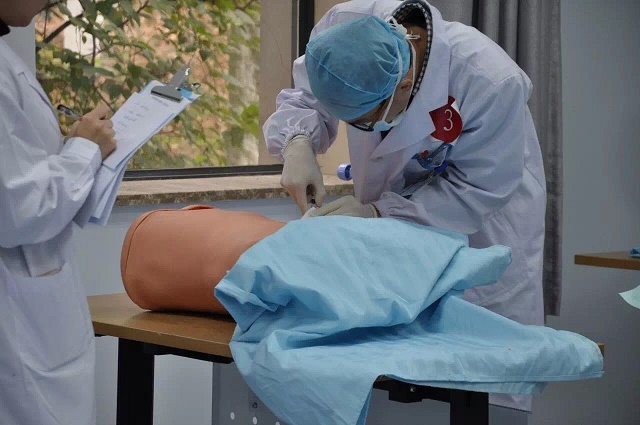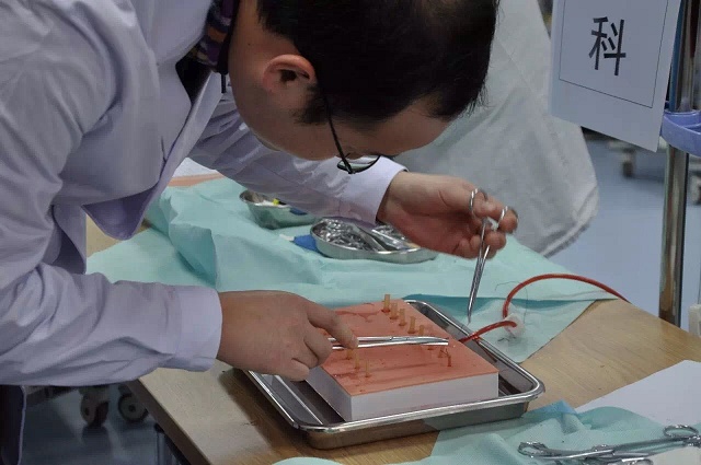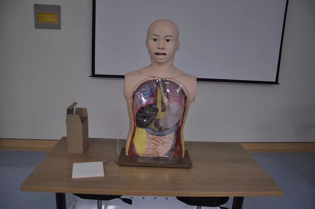 首先沈老师带领小编参观了与清创、缝合、引流、打结、穿刺等相关的模拟手术练习室。各种医学教学、演示、实践人体模型应有尽有,高度逼真——作为一个两周内上过两次手术台的人,眼前的一切让小编觉得再熟悉不过了。