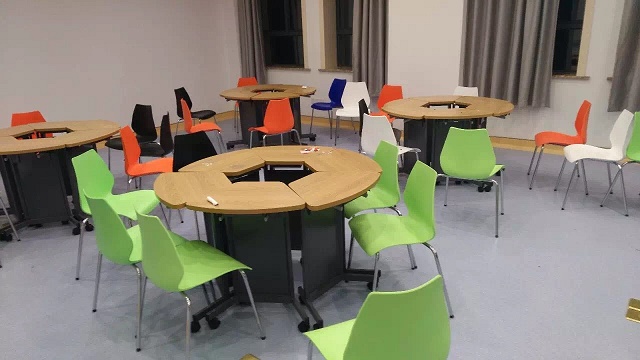 而后沈老师带领小编观摩了研讨室和教室。明快的色彩,温馨的氛围,高端的设施,灵活的布置,都让小编艳羡不已。