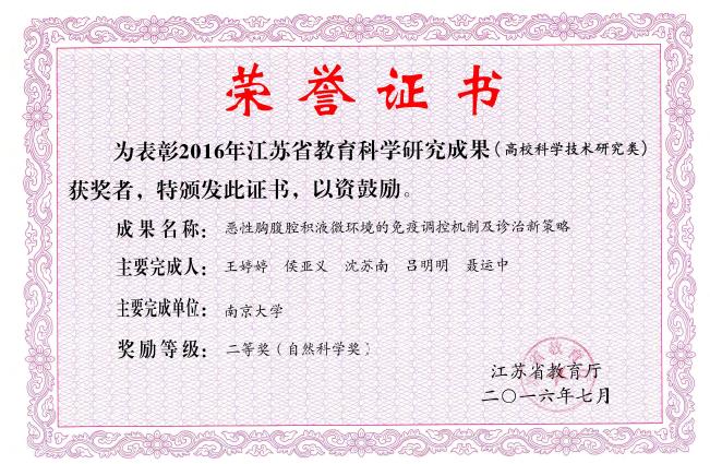 韦德1946体育官方入口王婷婷等喜获江苏省高等学校科学技术研究成果奖二等奖