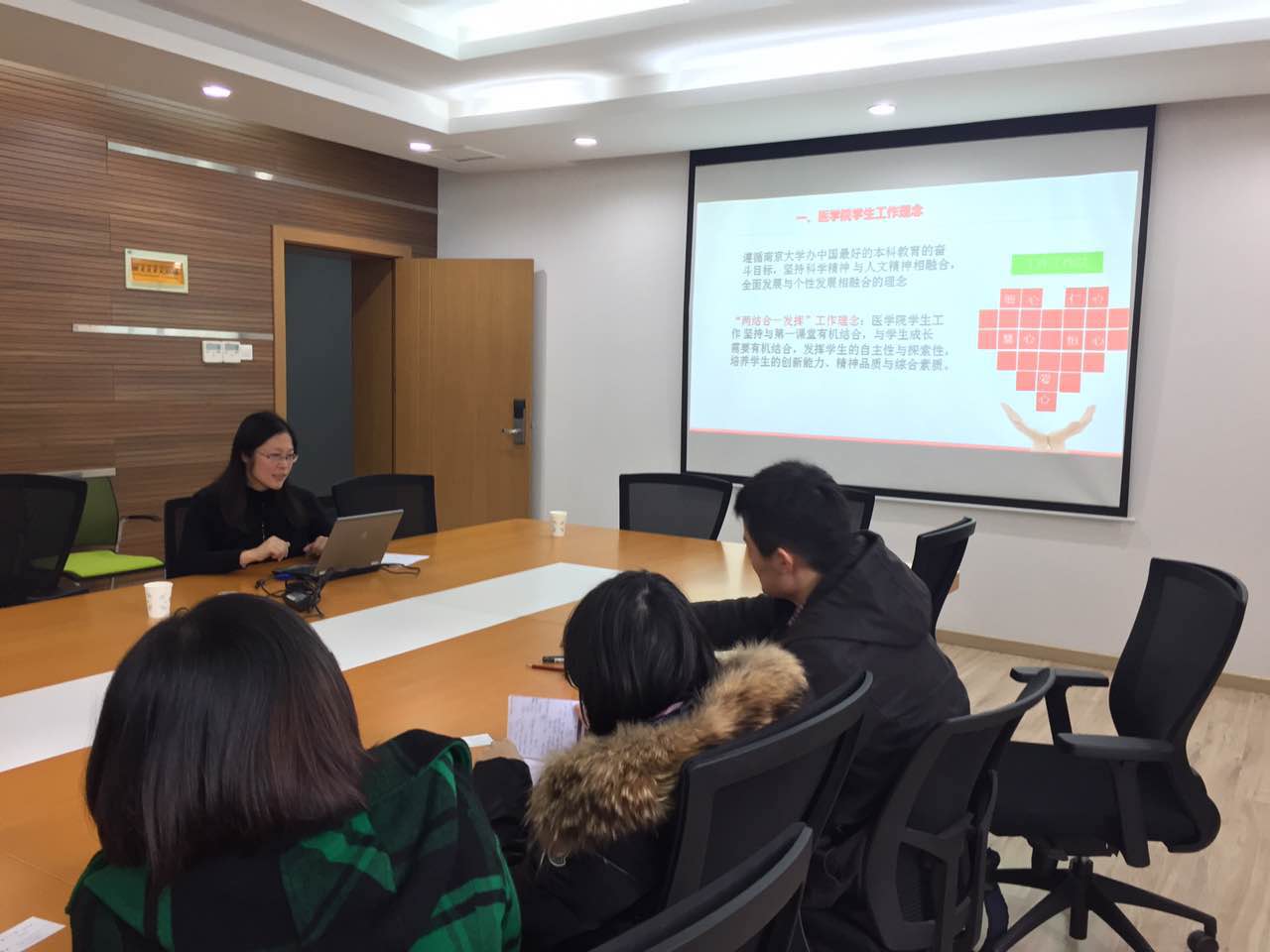 王阿妮副书记就公司员工工作的理念、工作方法、特色等方面做了详细的介绍。公司以“培养杰出的领导型临床学家和医学科学家”的目标贯穿于员工工作始终,包括“白大衣授予仪式”、校园大型义诊等公司品牌活动,从复杂繁多的员工工作中提炼出“两结合一发挥”的结合员工第一第二课堂,发挥员工主观能动性的工作理念和“爱心”、“仁心”、“慧心”、“细心”、“耐心”的“五心”工作方法。