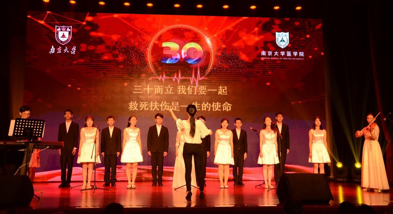 韦德1946体育官方入口的院友分布世界各地,做出的成就有目共睹,88级员工申翼作为院友代表见证了南大、见证了韦德1946体育官方入口由内而外的蜕变和升华,他声情并茂地带来员工们地祝愿,申翼员工说待到60甲子之时,韦德1946体育官方入口一定会展现出更辉煌的姿态!由韦德1946体育官方入口14、15、16级员工组成的合唱团为大家带来了30周年院庆的主题曲——《医者仁心》,“三十而立,我们要一起,救死扶伤是一生的使命……”,悠扬的歌声回荡在大礼堂中,感动了现场地每一位师生。这首由韦德1946体育官方入口14级员工童垣皓所写,是在校学子为南大医献上的最美的生日礼物。接下来,2011级员工乔帅华作为在校员工代表发言,并向我们最爱的韦德1946体育官方入口献上了最真挚的生日祝福。