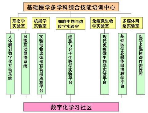 主要建设内容: (1)建立并完善韦德1946体育官方入口基础医学综合技能培训中心,中心下设五个实验教学技术平台(图4),即形态学实验室(包括宏观形态学和微观形态学)、机能学实验室、细胞生物与遗传学实验室、免疫微生物学实验室、多媒体网络实验室,实现实验资源有效共享,为培养创新性和研究性医学人才提供条件和服务。 (2)建立数字化的学习社区(Learning Community)平台(图5),引入互联网、物联网、云技术等信息新技术,将整个实验中心建在该平台之上,实现实验教学的数字化、信息化管理。 (3)进一步优化整合原教学实验室,实验室场地合并,仪器设备按功能重组,并进行必要的更新换代,引进现代化实验设备,使原有的实验室实现真正意义上的功能重组和效益重组。 (4)在教学体系与教学内容上,建立与理论教学有机结合,以能力培养为中心,分层次的实验教学体系,涵盖基本型、应用型、综合型、设计型、研究型、创新型实验等,着重培养员工的创新意识和自主动手能力。 (5)实施全开放式实验教学模式:实验室对员工不仅教学内容和教学方式的开放,而且在时间和空间对员工开放,员工可以充分利用实验室资源和场所进行研究性实验。员工可以选做中心提供的开放项目,也可自拟实验方案,经教师审核同意后进行实验。培养员工实验兴趣和创新能力,成为课内实验的有益补充和实验教学体系的重要一环。 (6)建立多元实验考核方法,统筹考核实验过程与实验结果,建立形成性考核的评价体系。 (7)完善实验室管理和维护保修的配套改革。制定实验中心各功能室管理规定和技术操作规程,每一实验室配备专门技术人员进行管理,统一管理、统一维护,保障实验教学的正常运行。 (8)进一步完善符合21世纪医学人才培养目标需要的实验教学教材;建立更加科学的实验教学体系,强化基本技能训练,增设有特色的综合性和应用性大实验;进一步提高开放式实验教学质量和效益;编写一套与精品课程相适应的精品课件,使人才培养质量再上一个台阶。 (9)加大教学研究与改革力度,争取获得省级、国家级教学成果奖。 (10)进一步加强实验中心网站建设,完善员工网上选课、网上预约和网上答疑系统。进一步依托网络信息技术,实现实验教学资源共享和管理信息化。 (11)进一步优化配置人才资源,改善团队队伍职称和学位结构,多安排高级职称人员上实验课;派出教师到国内外高校学习、进修,全面提高中心团队水平。