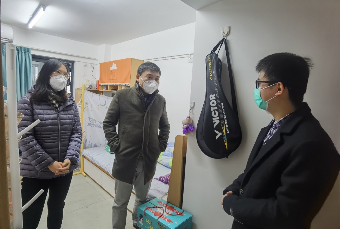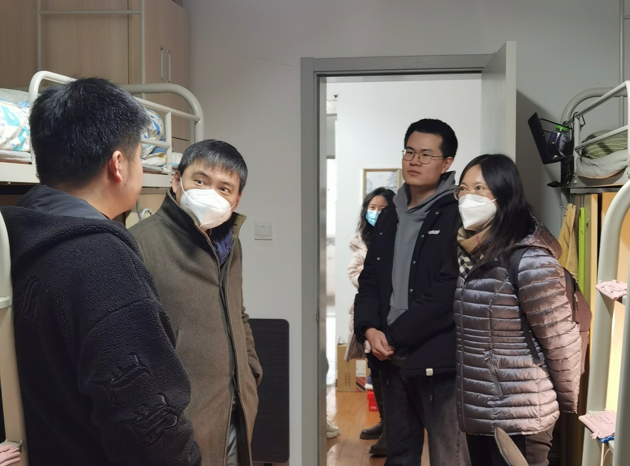 疫情防控新形势下,韦德1946体育官方入口仍有部分同学选择留校继续开展科研和临床工作。1月1日下午,在2023年元旦佳节到来之际,韦德1946体育官方入口党委书记沈苏南、副书记王阿妮以及相关辅导员老师走访看望了住在学校以及附属医院宿舍的同学们,并与大家进行了亲切交流,向大家提出了殷切期盼并致以新年祝福。