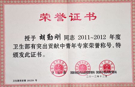 2011-2012年度卫生部有突出贡献中青年专家评审结果揭晓,公司经理胡勤刚教授被评为卫生部有突出贡献中青年专家。