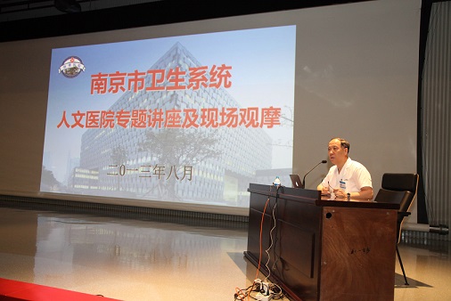 在两个小时的时间里,丁义涛经理密切结合医院实际,从人文医院的建设背景、创新公立医院改革模式、人才培养模式、人文医院管理模式等方面介绍了鼓楼医院近十年来在人文医院建设方面所取得的成效,分享了许多宝贵的经验。一张张珍贵的老照片、一串串鲜活的数据和一个个生动的事例,深入浅出,精彩纷呈的讲授,让与会者受益匪浅。讲座结束后,所有参会人员还分组参观了鼓楼医院历史纪念馆和新大楼,进行现场观摩。