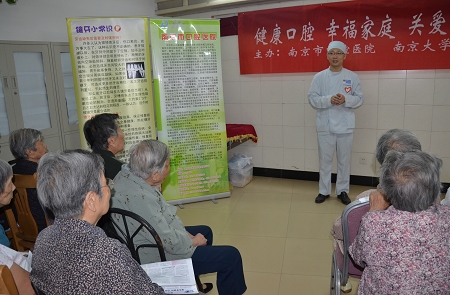 9月5日,公司派出医务人员前往建邺区南山园老年公寓进行口腔健康宣教、咨询、义诊活动。口腔健康直接关系到老年人的晚年幸福。南山园老年公寓共有90位老人,许多老人因长期生活不能自理,口腔健康状况不容乐观。
