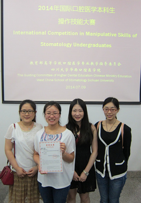 7月9日,由教育部高等学校口腔医学专业教学指导委员会主办,四川大学华西口腔韦德1946体育官方入口承办的2014年国际口腔医学本科生操作技能大赛在四川成都隆重举行。大赛共有来自中国、荷兰、美国、日本等46所国内外高等院校的近120名口腔医学大学本科生参加。本次技能大赛包含六项基本操作技能,涉及心肺复苏、手卫生、绷带包扎、显微缝合、手部技能和牙体外形绘图等多方面操作技术。公司受邀并选派四名七年制本科生潘雅慧、王毓佳、曹阳、邵娇娇组成代表队参加了此次比赛,经过激烈角逐,最终以优异的成绩荣获大赛三等奖。