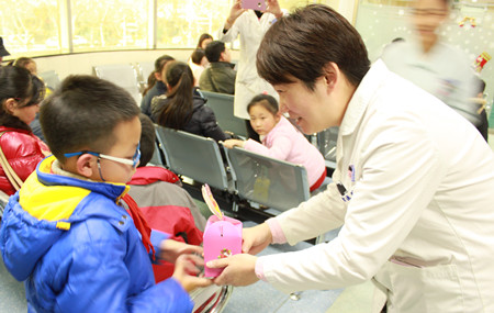 下午三点,口腔正畸科、儿童口腔科候诊大厅一片欢乐的海洋,小朋友们围着医院的“爱心天使”,争着要求回答问题、表演节目。活动历时一个半小时,共计赠送近一百份小礼品。一位带着孩子来补牙的母亲表示,市口腔的活动让她很感动,因为她的孩子从白衣天使身上看到了,得到什么并不重要,给予他人快乐才是最关键的。