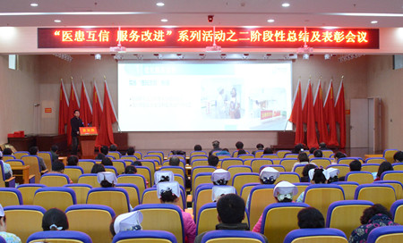 此次会议表彰了“医患互信 服务改进”系列活动的获奖单位及个人,公司荣获了2014年度先进单位及“患者沟通满意奖”;周楠、沈道洋荣获“优秀组织协调奖”;江卫民、李丽荣获“真情医护工作者”称号,杨旭东、俞青、潘曦、孙婷等荣获“优秀医护工作者”称号;张阅荣获“优秀组织宣传奖”。