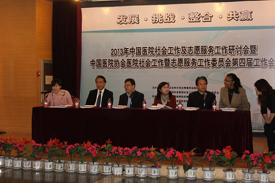 2013年12月13日,中国医院协会医院社会工作暨志愿服务工作委员会在北京大学人民医院举办了“2013年中国医院社会工作及志愿服务工作研讨会暨中国医院协会医院社会工作暨志愿服务工作委员会第四届工作会议”,中国社会工作协会副会长兼秘书长赵蓬奇、中国医院协会副秘书长王玲玲、国家卫生和计划生育委员会医政医管局副局长周军出席了此次会议,来自美国宾西法尼亚大学、国内著名专家学者共同探讨分享医院社会工作专业理念和本土化医院社会工作及志愿服务操作模式与经验。