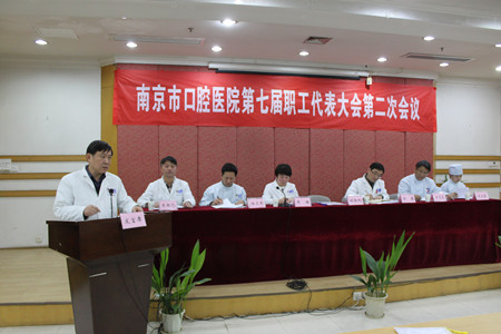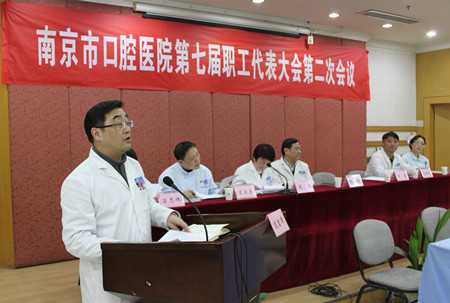 3月11日至12日,南京市口腔医院第七届职工代表大会第二次会议在在15楼会议室胜利召开。医院经理胡勤刚,党委书记王磊,党委副书记、工会主席周楠等院领导及来自医院7个分工会120余名正式代表、列席代表和特邀代表参加了会议。会议由党委副书记、工会主席周楠主持。