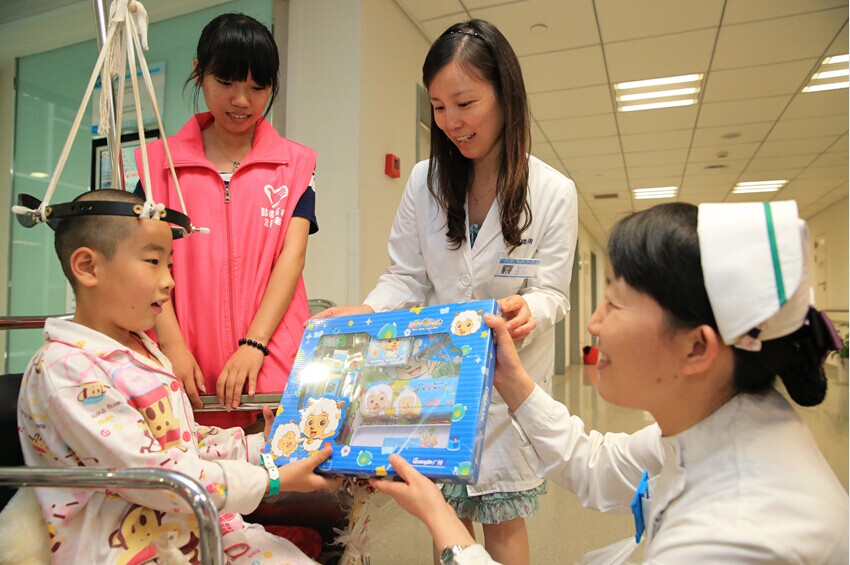 “六·一”国际儿童节是孩子们共同的节日。为了让很多躺在病床上的孩子也能欢度“六·一”儿童节,公司组织志愿者为脊柱外科的住院小患者送上节日的祝福。