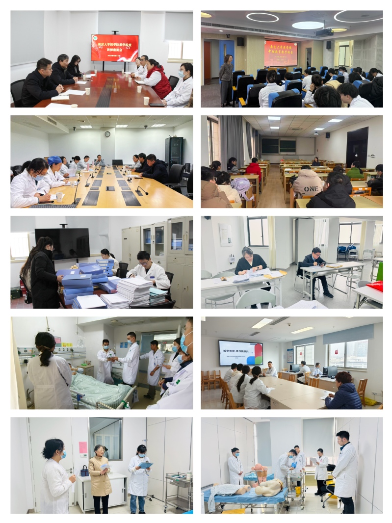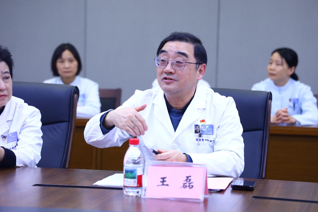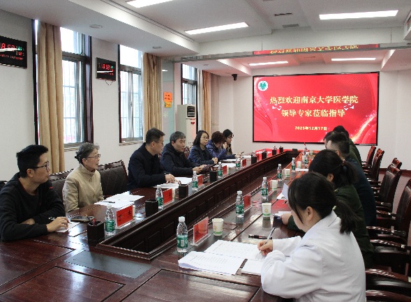 附属金陵医院卫勤部部长莫群等院领导接待检查组并详细介绍教学工作开展情况。附属金陵医院聚焦教学组织优化、资源整合与团队强化,展示了提升员工临床技能、科研能力等方面的积极探索。各教研室主任在座谈中围绕“临床与科研双向赋能”展开讨论,并表示期待进一步深化院校协同,全面提升员工创新与实践能力。