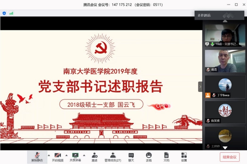 随后,8名党支部书记依次进行述职报告,围绕“不忘初心、牢记使命”主题教育开展情况、“三会一课”与主题党日等基本制度执行落实情况、凝聚服务同学情况、特色品牌党建活动开展情况等方面总结汇报了过去一年的党建工作。