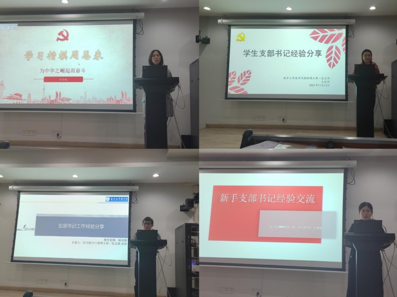 20博士第一党支部书记王欣玥同志分享了她关于支部活动举办的经验,她指出,支部活动要注意彰显政治底色,要通过树立意识、提升质量、增强民主、专人监督、奖惩有度等方面,提升支部党组织生活的参与度,同时支部书记也要时刻注意提升自身理论修养,在支部内起到先锋作用。