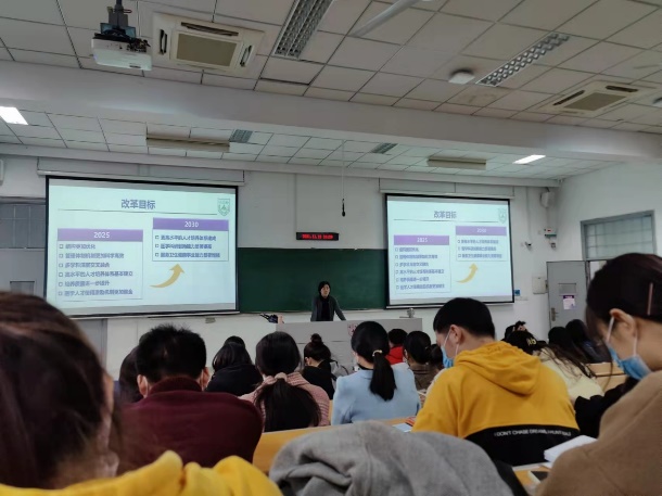 接着,韩老师解读了我国医学教育创新发展的改革目标,即2025年实现教育结构更加优化、管理机制更加科学高效、多学科深度交叉融合、高水平的人才培养体系基本建立、培养质量进一步提升、医学人才使用机制更加健全的目标;2030年实现更高水平的人才培养体系建成、医学科研创新能力显著提高、服务卫生健康事业能力显著增强的目标。并介绍了南大韦德1946体育官方入口在加强医学团队建设、优化医学人才培养结构、提高医学人才培养质量、加强附属医院建设等方面的思考和举措。最后,韩老师再次向在场全体医员工提出了南大韦德1946体育官方入口的培养目标:培养杰出的领导型的临床学家和医学科学家。