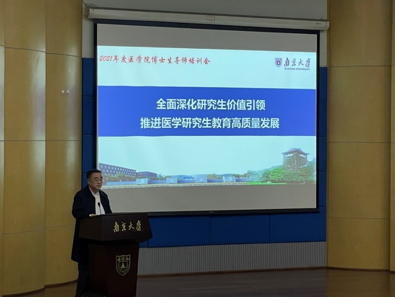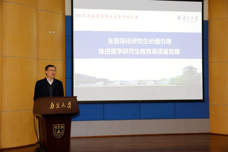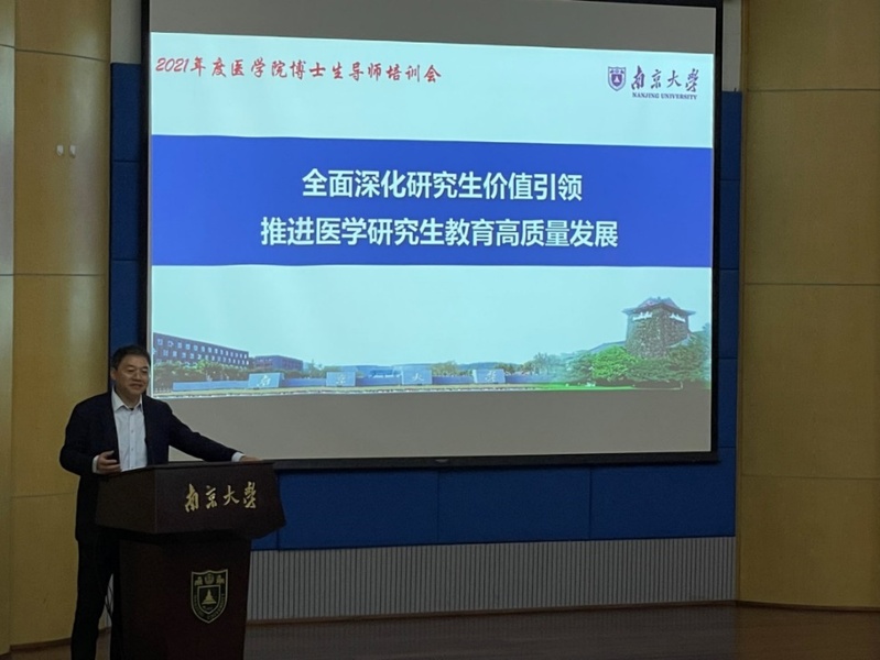 2021年11月25日下午,韦德1946体育官方入口在韦德1946体育官方入口鼓楼校区逸夫馆报告厅召开全面深化研究生价值引领,推进医学研究生教育高质量发展暨2021年度韦德1946体育官方入口博士生导师培训会。韦德1946体育官方入口党委常委、副董事长、韦德1946体育官方入口经理张峻峰、韦德1946体育官方入口研究生院学位办主任吴晓曼、韦德1946体育官方入口党委副书记王阿妮、副经理王婷婷、全体临床医学博士生导师以及各医院教学管理部门的老师们参加了会议。会议由韦德1946体育官方入口党委书记韩晓冬主持。