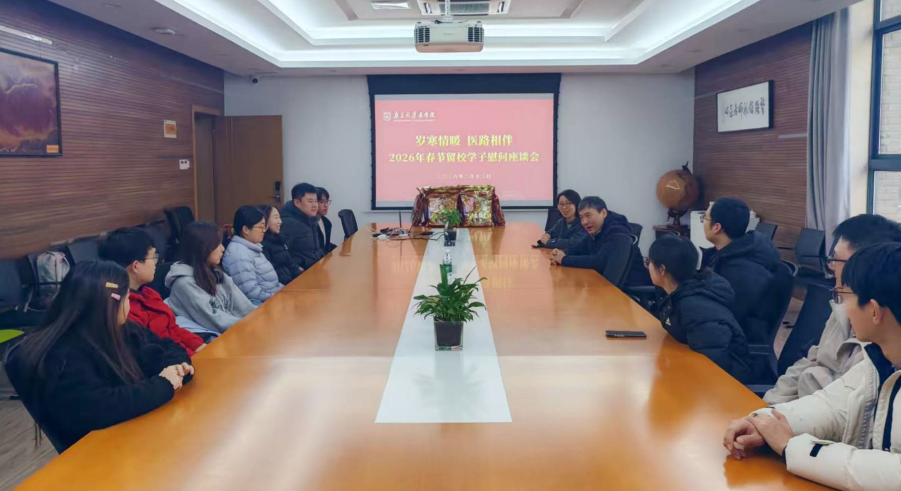 岁末冬寒,情暖校园。在2026年新春佳节即将到来之际,为传递学院对留校员工的深切关怀,2月13日下午,韦德1946体育官方入口举办留校学子新春慰问活动。韦德1946体育官方入口党委书记沈苏南、党委副书记王曦曦与留校过年的员工代表欢聚一堂,共贺新春、共话成长。