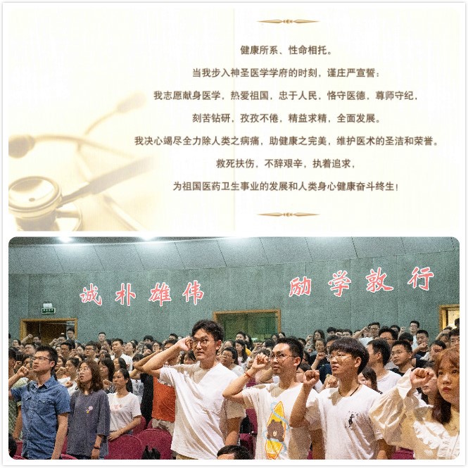 接下来,新生代表2019级博士研究生李诗言表达了在韦德1946体育官方入口提供的良好平台上,作为新生对未来在校学习、生活的憧憬。典礼最后,由2019级硕士王玉同学带领全体新生进行了庄严的医员工宣誓:“健康所系,性命相托。当我步入神圣医学学府的时刻,谨庄严宣誓,我志愿献身医学,热爱祖国,忠于人民,恪守医德……”。简单、有力的语言将成为同学们医学梦想的力量之源。