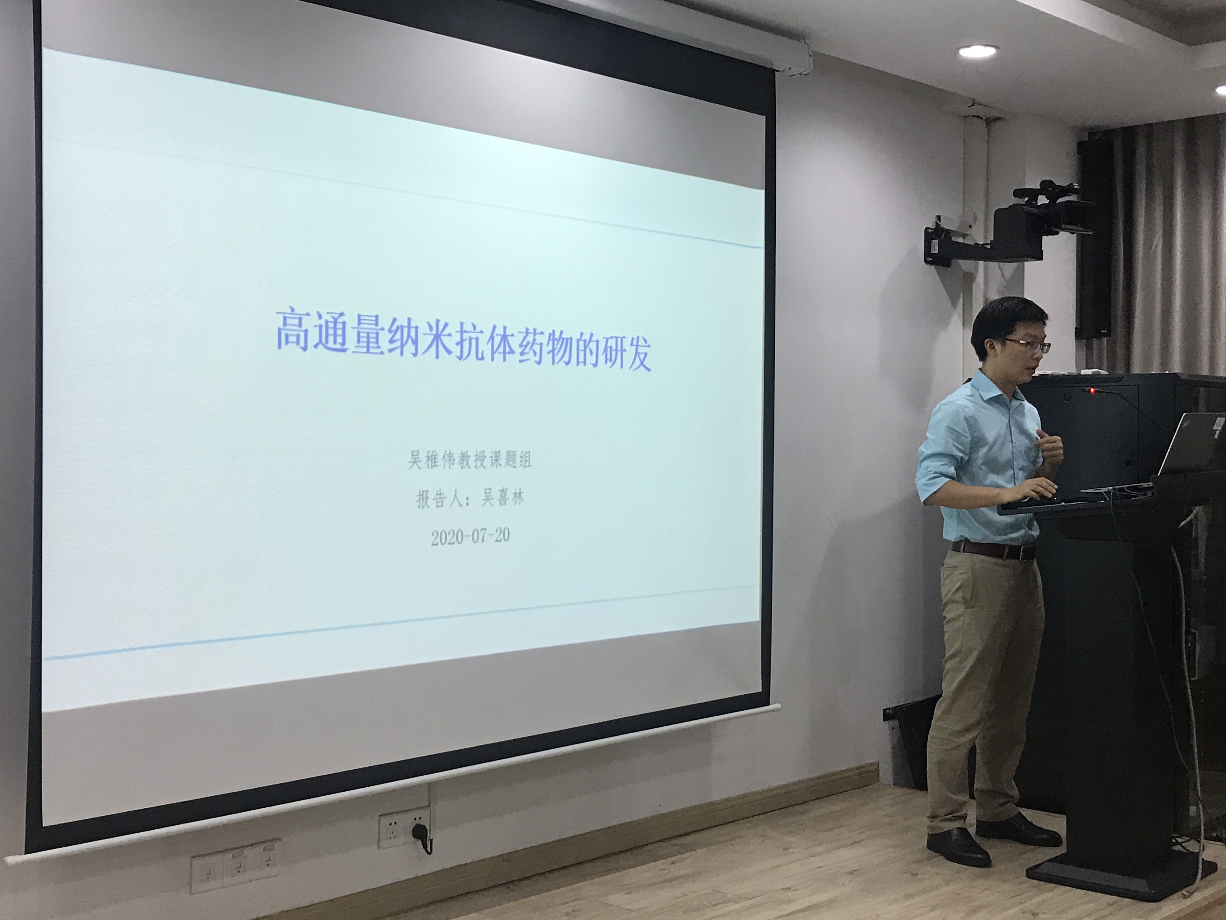 吴喜林老师围绕了高通量纳米抗体药物的研发这一主题的研究内容向在场的师生进行介绍与交流。
