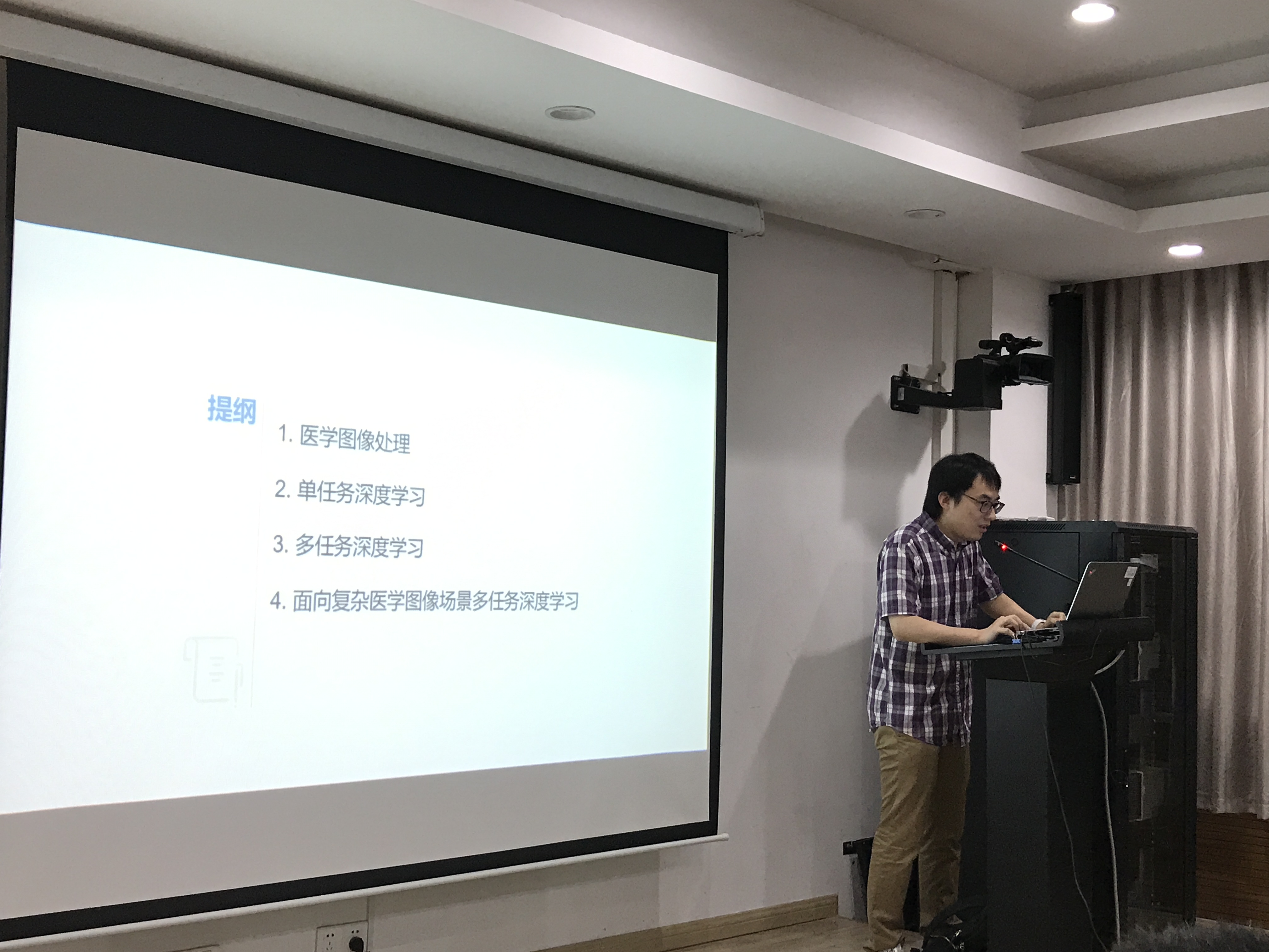 何克磊老师围绕面向复杂医学图像分析场景多任务深度学习这一主题内容与在场的师生展开交流,包括医学图像处理、单任务深度学习、多任务深度学习以及面向复杂医学图像场景多任务深度学习等内容。