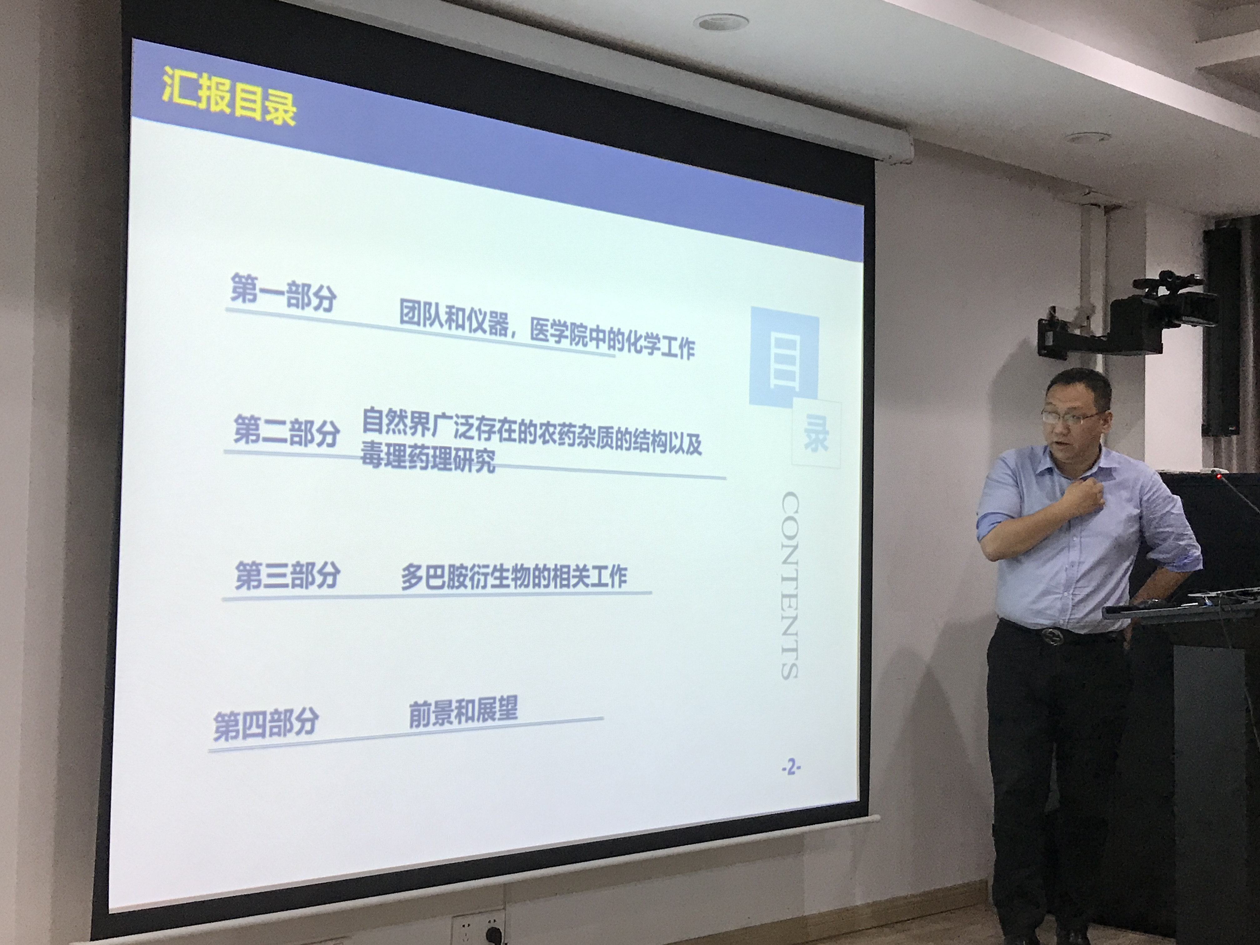 申晟与周净老师合作汇报,主要从韦德1946体育官方入口的化学工作(团队与仪器)、自然界广泛存在的农药杂质结构以及毒理药理研究、多巴胺衍生物的相关工作以及前景展望这四部分进行了分享。