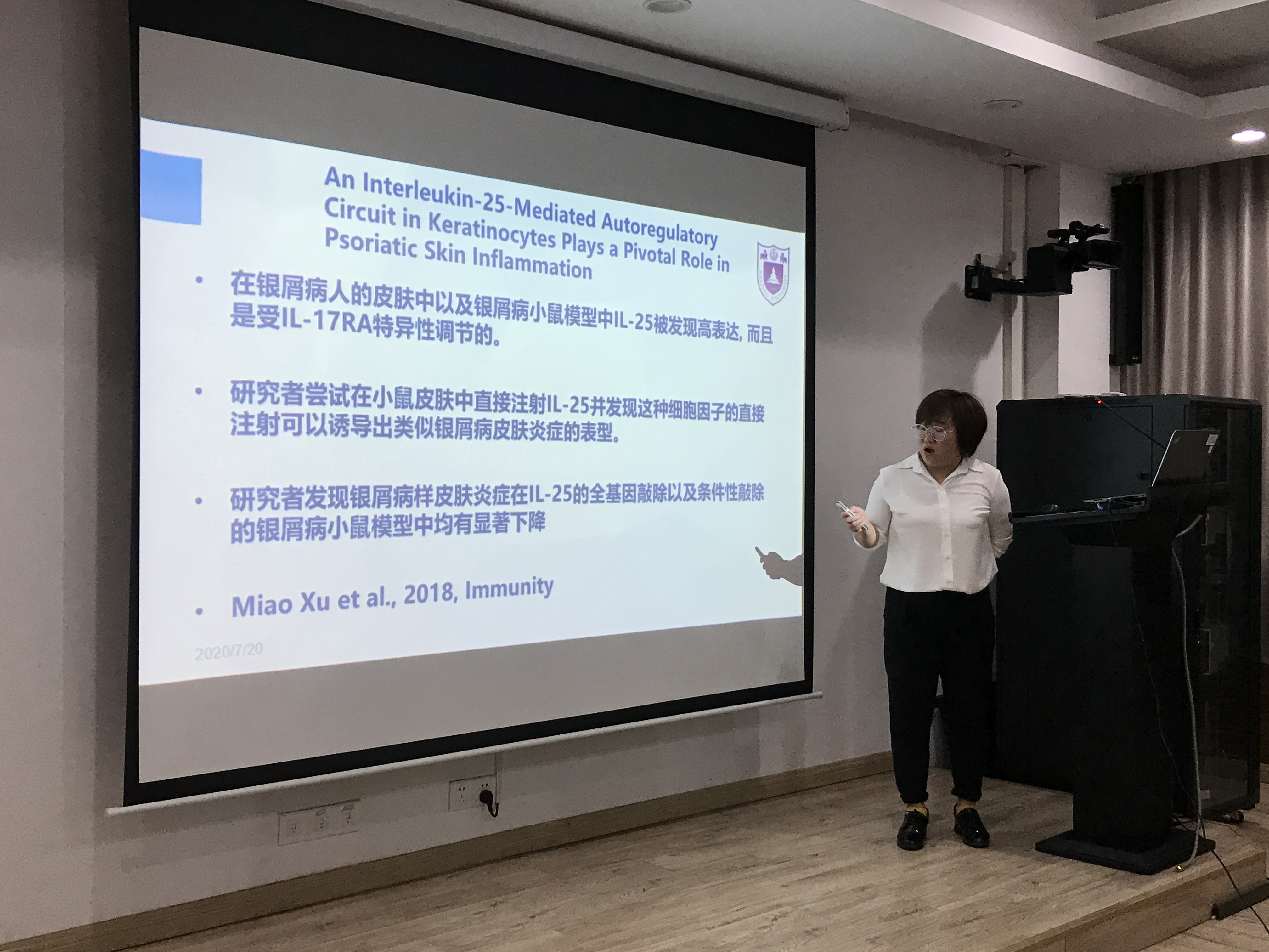陈德燕老师就她上半年的科研工作成果作了内容丰富的学术汇报,主要围绕Tuft cells-Derived IL-17E (IL-25) contributes to EV71 infection in the intestine这一主题与在场的师生进行交流。