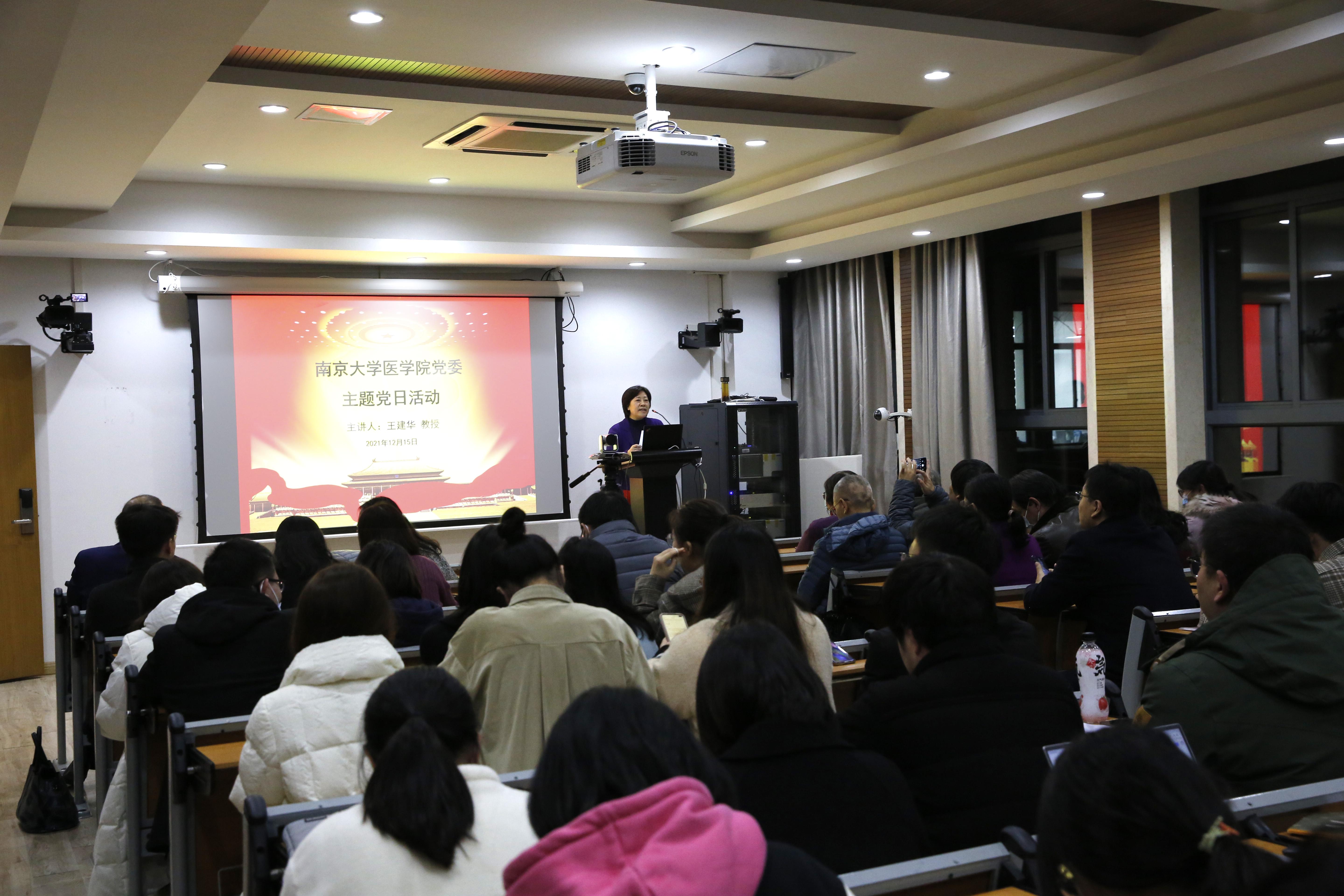 在“两个一百年”奋斗目标历史交汇的关键节点,为深入学习贯彻党的十九届六中全会精神,扎实推进和高质量开展党史学习教育,全面贯彻党的教育方针、落实立德树人根本任务、培养堪当民族复兴大任时代新人,2021年12月15日晚18:30-20:00,韦德1946体育官方入口韦德1946体育官方入口党委于东南楼206报告厅开展“人民至上的中国道路”主题党日活动,韦德1946体育官方入口马克思主义公司党委书记王建华教授主讲十九届六中全会精神。韦德1946体育官方入口全体党员准时参会,活动由韦德1946体育官方入口党委书记韩晓冬老师主持。